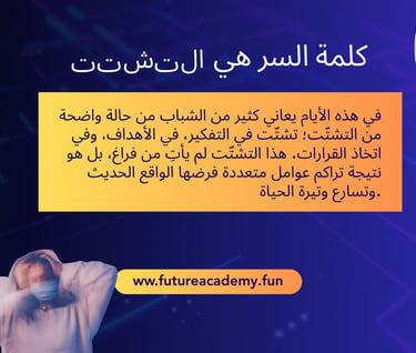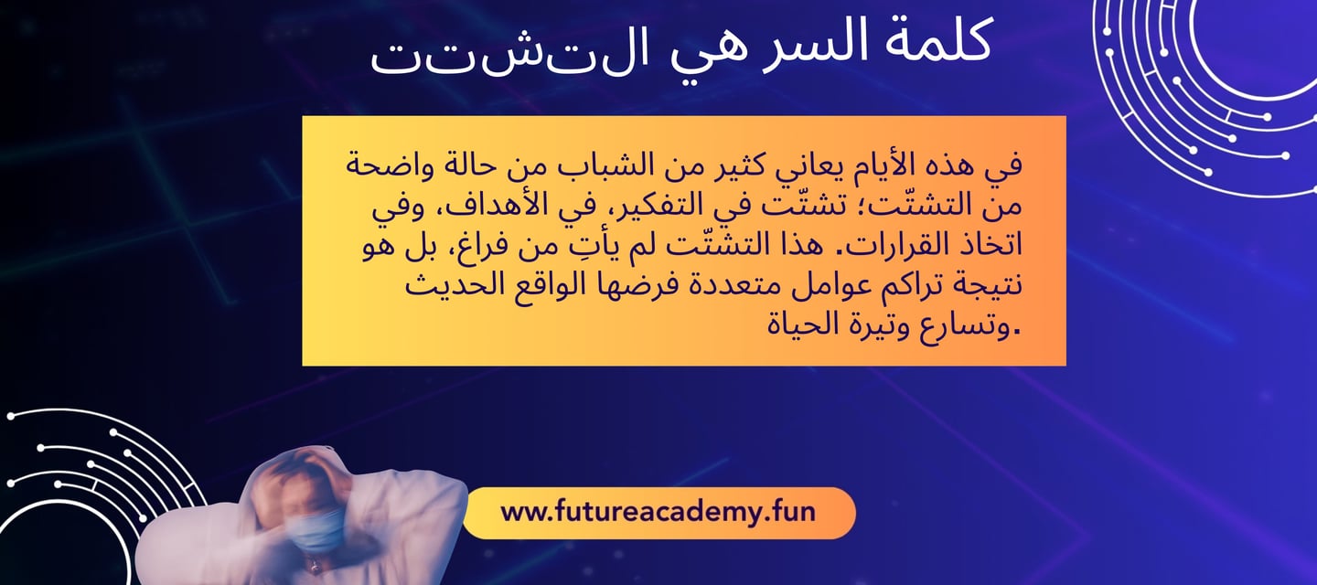 وأن يدرك الشاب أن التشتّت حالة طبيعية في هذا العصر، وليست ضعفًا شخصيًا.